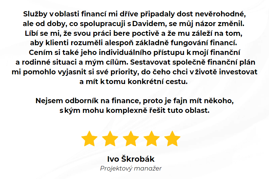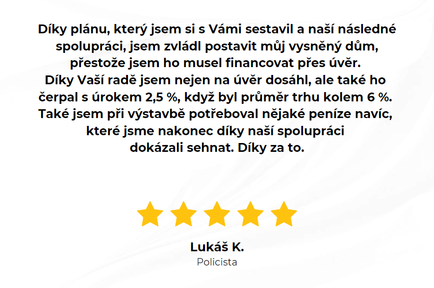 Více než 5 let pomáhám lidem na cestě k vlastnímu bydlení, ale také investičním nemovitostem. Pomohl jsem už více než 150 klientům dosáhnout jejich finančních cílů.